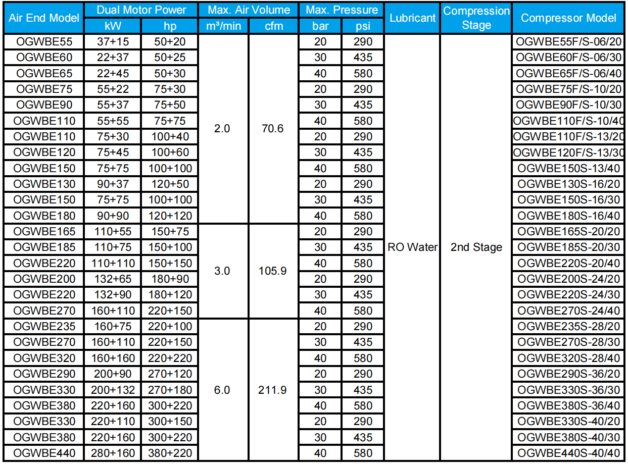 • Applicable Compressor Type: Water Lubricated Oil Free Compressor