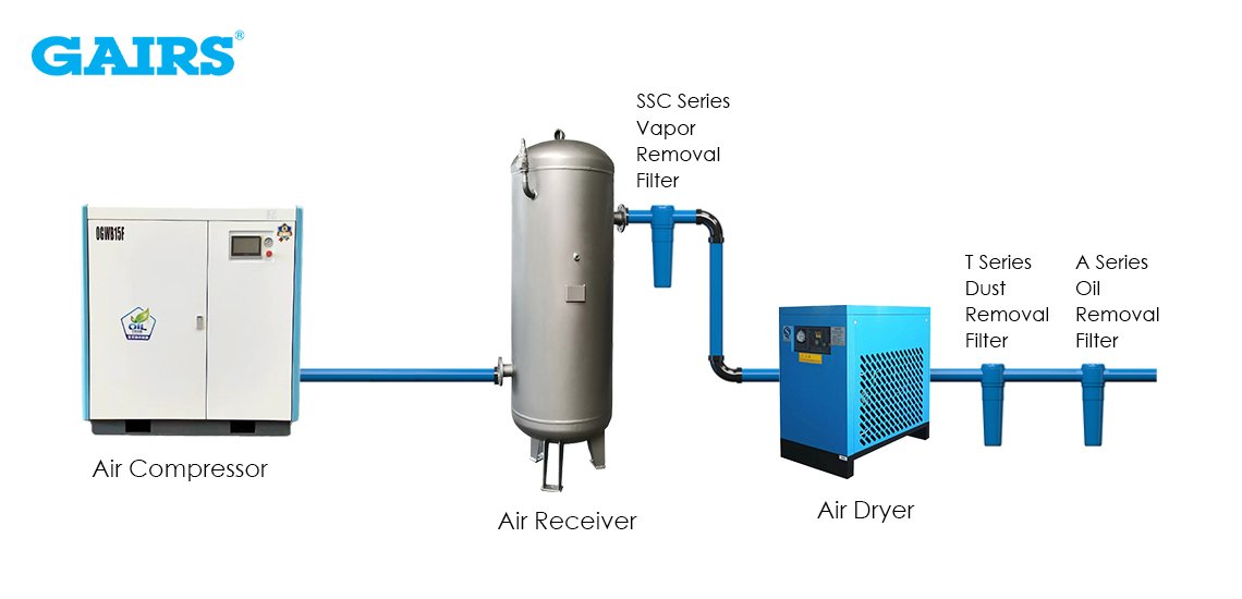 An air receiver stores compressed air for later use, smoothens pressure fluctuations, and provides consistent airflow. It also helps reduce compressor cycling and prolongs the lifespan of the entire system.